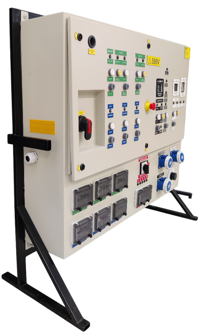 Ponadto rozdzielnica wyposażona jest w odpływ gniazdowy z napięciem regulowanym w zakresie 0…250 VAC, które może posłużyć do sprawdzania urządzeń elektrycznych oraz blok kontroli ciągłości obwodów (przedzwonki) umożliwiający dokonanie sprawdzenia ciągłości badanych obwodów elektrycznych.